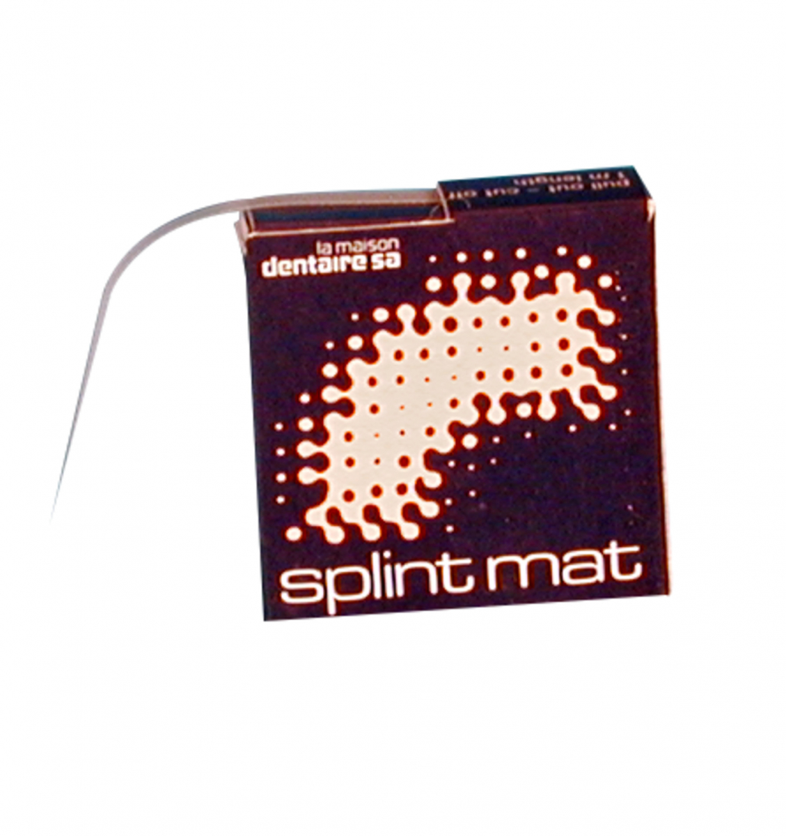 SPLINT MAT Griglia resistente e facilmente adattabile, per sostituzione di denti anteriori, stabilizzazione di denti traumatizzati, ritenzione fissa e splintaggi. Confezione: dispenser da m 1x5 mm (LxH). In nylon.