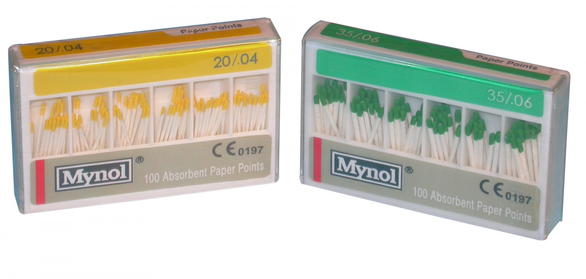 CONI CARTA A CONICITÀ AUMENTATA per asciugare ogni tipo di canale. Conicità 4%. Confezione: 100 pezzi