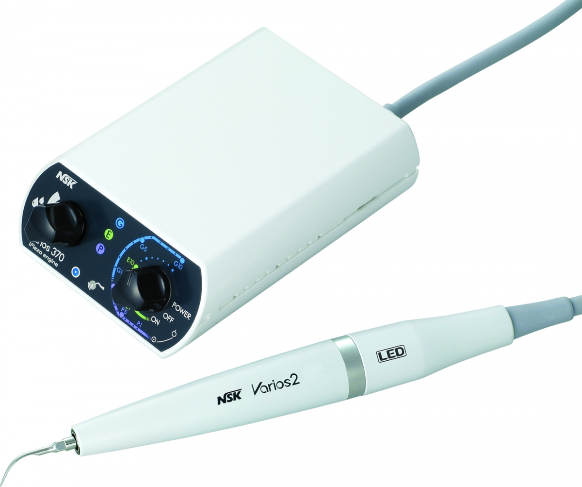 VARIOS 370 Ablatore ultrasonico multi-funzionale compatto, a tecnologia iPiezo, che assicura stabilità della potenza in uscita, adeguando automaticamente la frequenza di vibrazione ottimale alla situazione clinica, assicurando trattamenti più efficaci per tutte le applicazioni. Consolle ultracompatta e facilmente trasportabile, può essere installata su qualsiasi riunito: il pannello di controllo, semplice ed intuitivo, è angolato per permettere maggiore visibilità all'operatore. Indicato per tutte le applicazioni cliniche, Endo, Perio e Scaling,dispone di 11 livelli di regolazione della potenza (da 0 a 10) ed un'ampia gamma di punte. Dimensioni: 135x32x80 mm (LxHxP). Frequenza: 28~32 KHz. Collegamento a rete idrica: Sì.