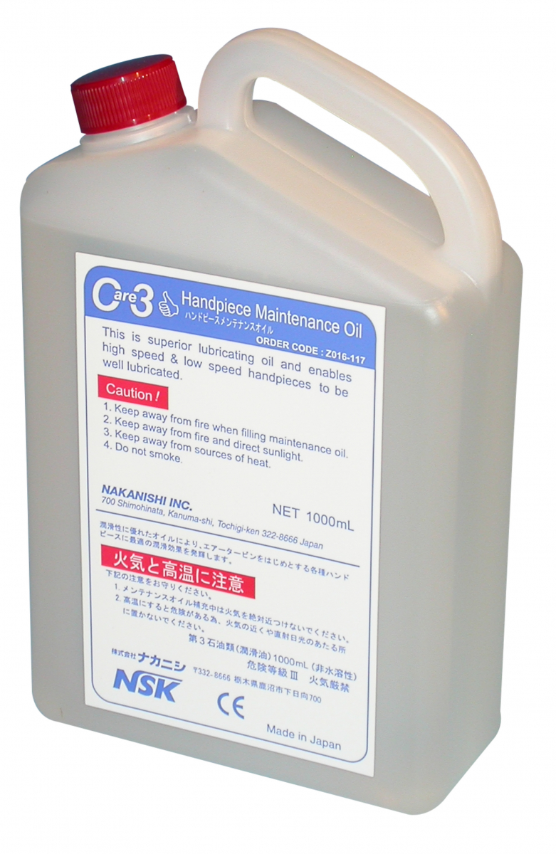Olio lubrificante per manipoli e turbine da utilizzare con sistemi automatici di pulizia e lubrificazione Care 3/iCare/iCare+. Flacone da 1 Lt