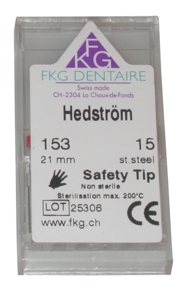 HEDSTROEM Strumentario canalare, in acciaio inox. Manico in plastica, sterilizzabile fino a 200° C. Placchetta da 6 strumenti
