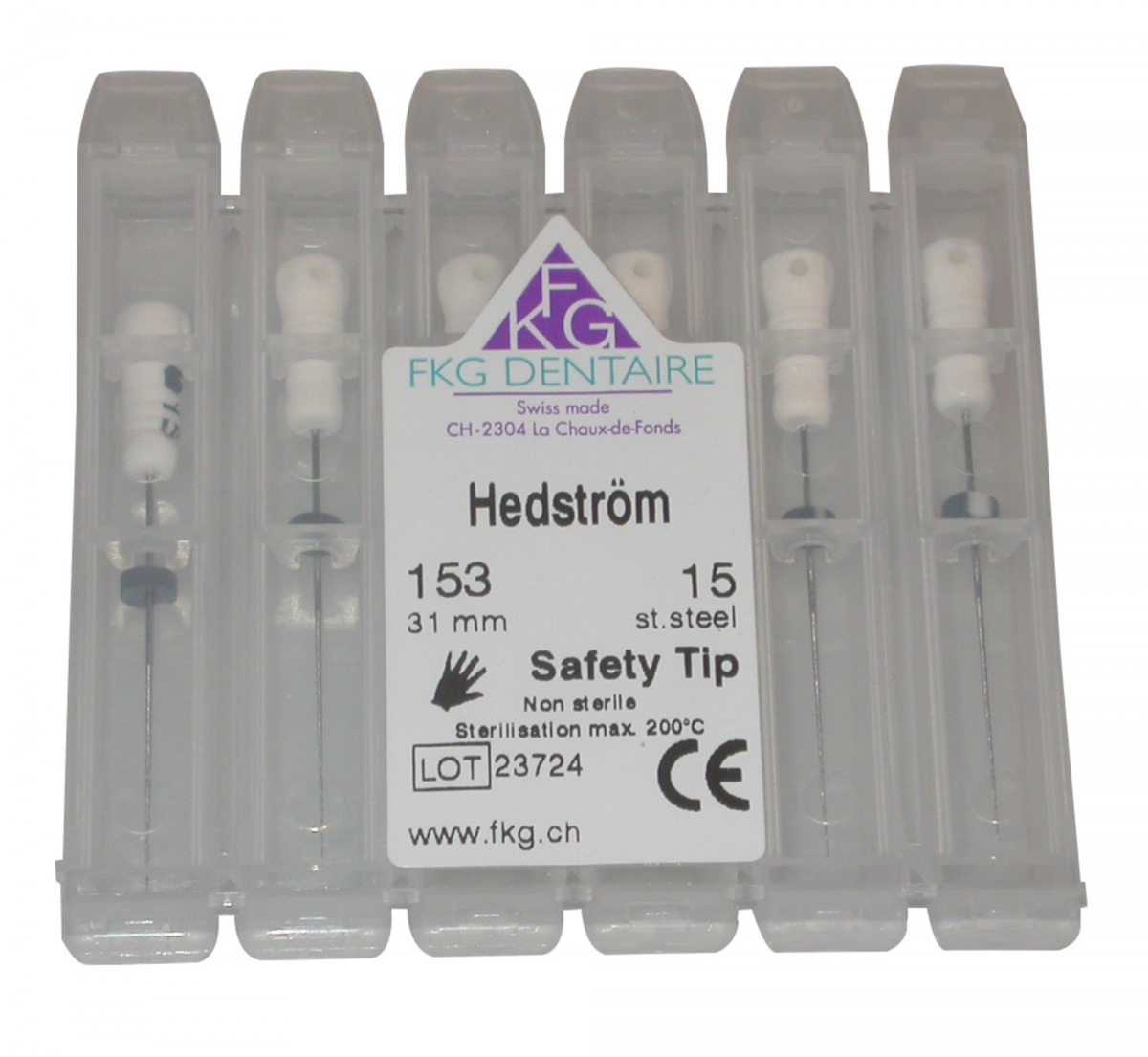 HEDSTROEM Strumentario canalare, in acciaio inox. Manico in plastica, sterilizzabile fino a 200° C. Placchetta da 6 strumenti