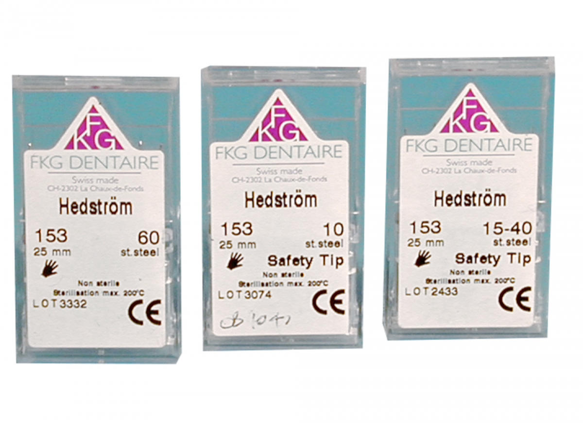 HEDSTROEM Strumentario canalare, in acciaio inox. Manico in plastica, sterilizzabile fino a 200° C. Placchetta da 6 strumenti