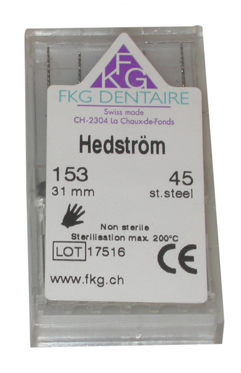 HEDSTROEM Strumentario canalare, in acciaio inox. Manico in plastica, sterilizzabile fino a 200° C. Placchetta da 6 strumenti