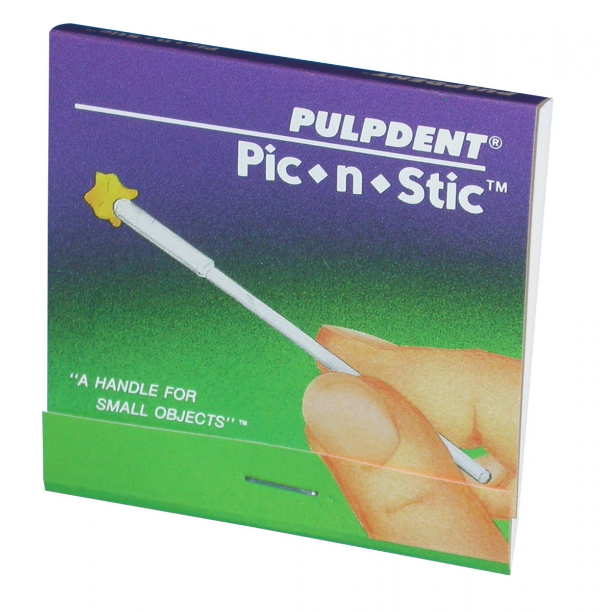 Bastoncini con porzione terminale adesiva per trattenere e posizionare piccoli manufatti come intarsi, corone, perni, brackets, ecc., difficilmente manipolabili con le dita o le pinzette. Confezione da 60 pz.