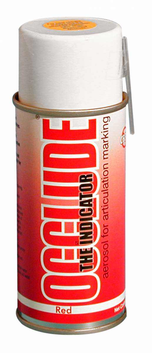OCCLUDE Indicatore spray finalizzato all'identificazione dei punti di contatto occlusale. Può essere utilizzato direttamente in bocca o su modello. Flacone da 75 gr - Colore Rosso