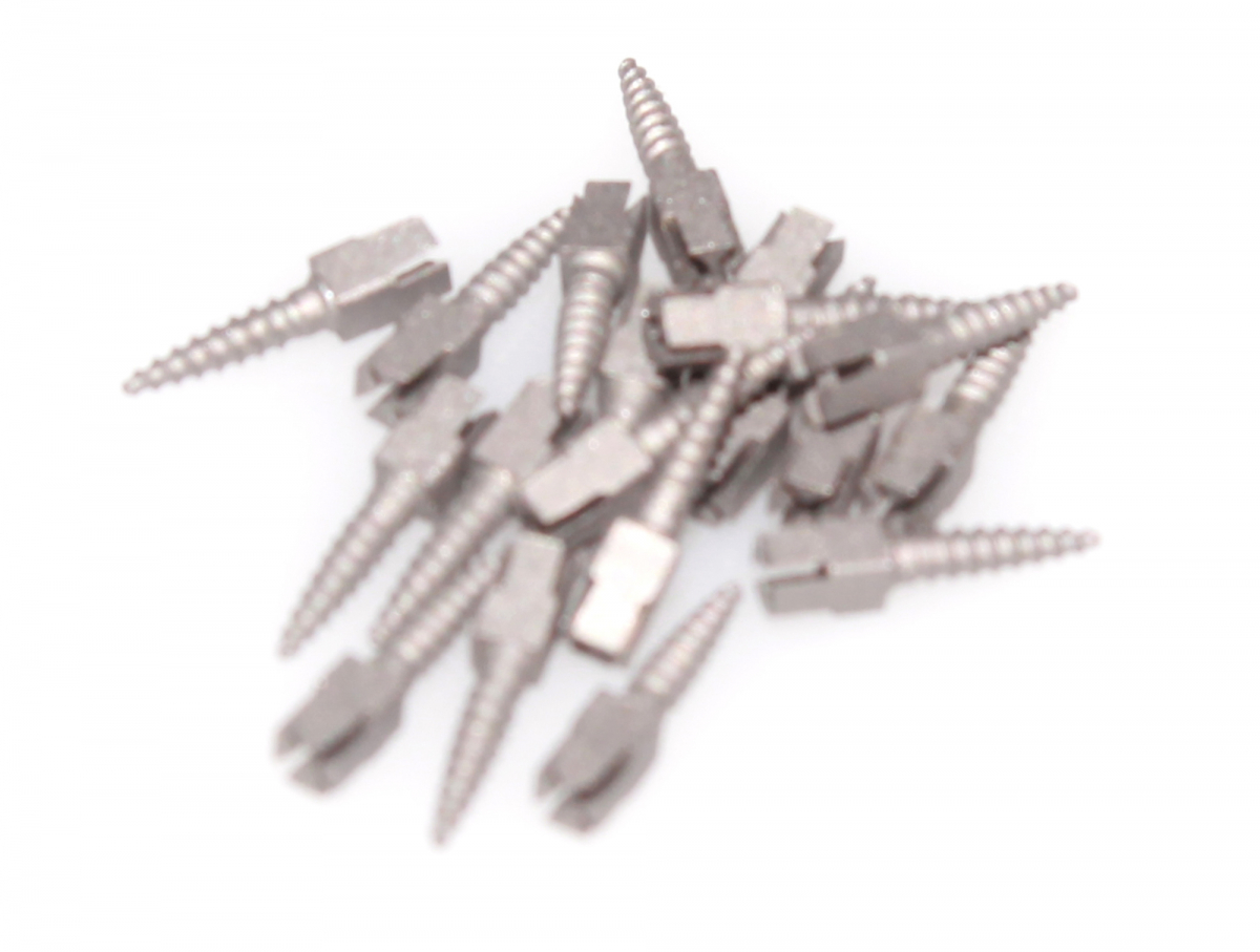 VITI SABBIATE SURTEX Perni endodontici dalla forma anatomica, sezione centrale cilindrica ed estremità inferiore conica. La superficie sabbiata irregolare garantisce una ritenzione doppia rispetto ai perni tradizionali. Ideale l'utilizzo con compositi e materiali traslucenti; non è necessario mordenzare o sabbiare. VITI TITANIO S(short) lunghezza 7,8 mm Confezione Ricambio: 15 viti