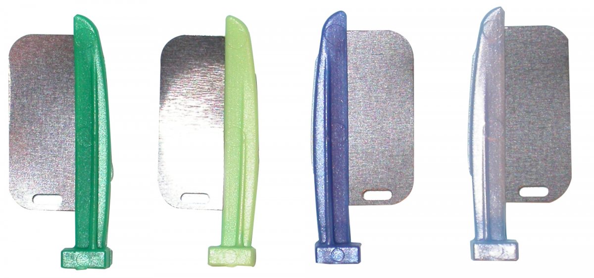 FENDER MATE Sistema di matrici sezionali (in metallo) combinate con cuneo interdentale (in plastica), ideale per ricostruzioni interprossimali nelle cavità di II classe. La procedura si esaurisce in tre semplici passaggi: inserire il cuneo/matrice nello spazio interprossimale, liberare le estremità della matrice dal cuneo adattandole al dente, posizionare un anello di fissaggio e procedere con la ricostruzione. Kit: 72 cunei/matrici sezionali (sinistri 18 regular, 18 small; destri 18 regular, 18 small)