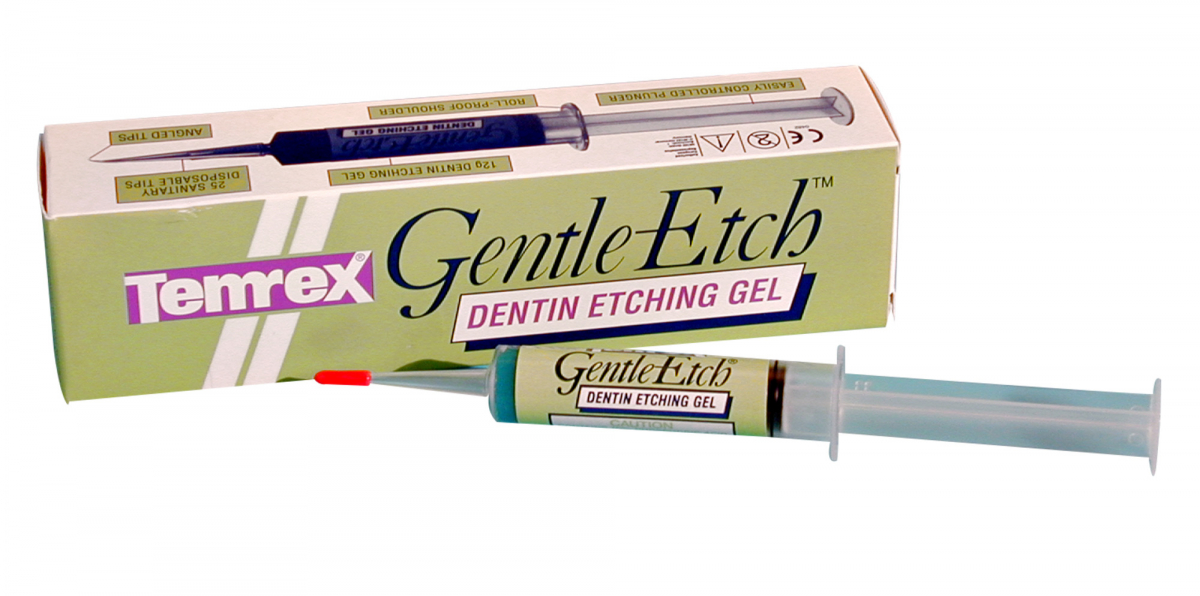 GENTLE ETCH 10% - Temrex Acido fosforico al 10%, in gel, tissotropico, per la mo rdenzatura di smalto e dentina. Confezio ne: 1 siringa da 12 GR + 25 puntali ango lati monouso
