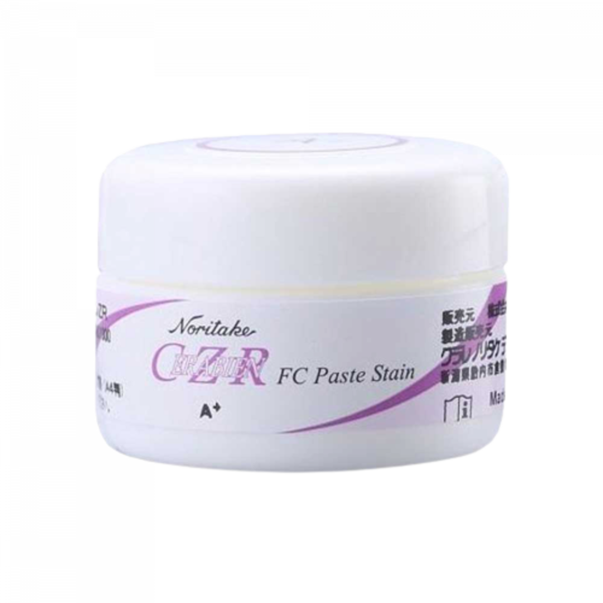 Emulsioni colorate traslucenti e fluorescenti per la colorazione esterna dei restauri in zirconia KATANA e CZR. La nuova formulazione ad alto contenuto di vetro assicura una singolare permeabilità alla luce e permette la colorazione delle superfici dei restauri in KATANA mantenendo integre le proprietà di traslucenza della nuova zirconia cubica. FC Paste Stain è disponibile in 27 colori con elevate proprietà di fluorescenza. Quattro tinte grigio-blu sono state sviluppate per una gestione individuale del margine incisale, mentre la luminosità può essere gestita con la massa Fluoro. Scheda di cottura per la realizzazione di restauri in zirconia anatomica. FC Paste Stain può essere cotto alla temperatura di 750°C durante la realizzazione di restauri in zirconia anatomica (100% zirconia). Questa temperatura è inferiore rispetto a quella utilizzata per i pigmenti esterni convenzionali. L’ottimizzazione dei restauri in zirconia anatomica. Le emulsioni colorate FC Paste Stain rappresentano un significativo completamento della tecnica KATANA Multi-Layer, in quanto definiscono un nuovo metodo per caratterizzare i restauri anatomici in zirconia che si contrappone alla tecnica d’infiltrazione del colore con microbrush. Una tecnica di micro-stratificazione che, grazie alla spiccata traslucenza delle emulsioni FC Paste Stain, è in grado di stupire anche i tecnici più esigenti per il risultato estetico e la rapidità di realizzazione, senza la perdita della texture di superficie.