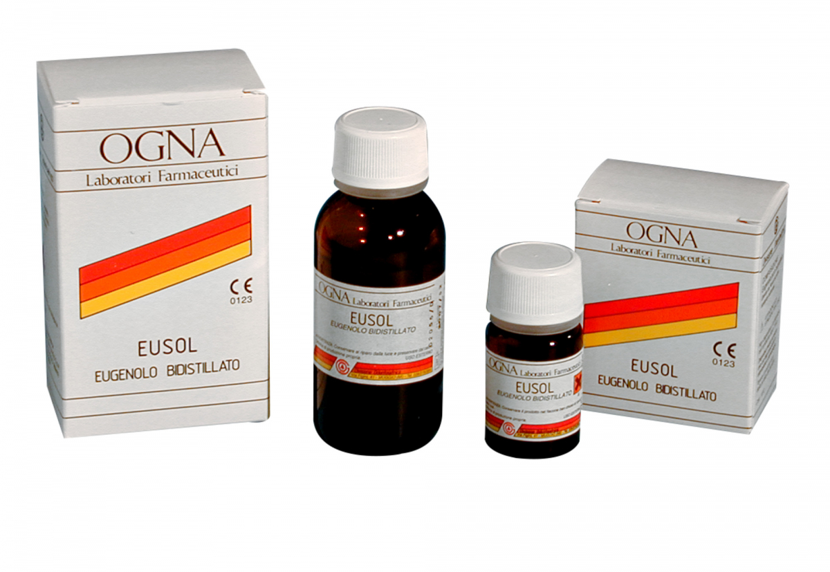 EUSOL Eugenolo purissimo bidistillato, privo di fenoli ed acidi organici. Flacone clinico da 50 gr