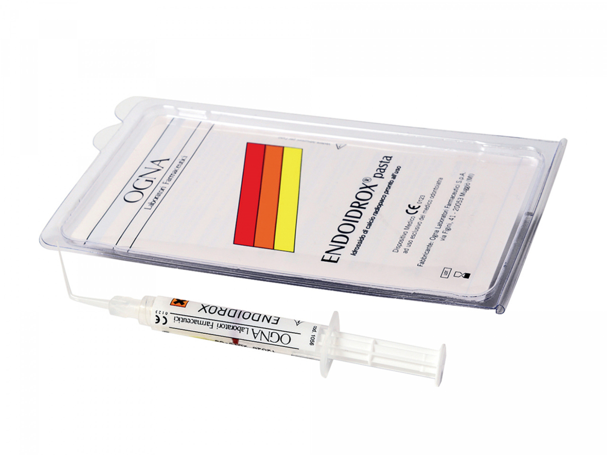 Idrossido di calcio al 35%, radiopaco, pronto all'uso; per medicazioni intermedie di canali necrotici e vitali. Confezione: 1 siringa da 2,5 g + 20 puntali applicatori