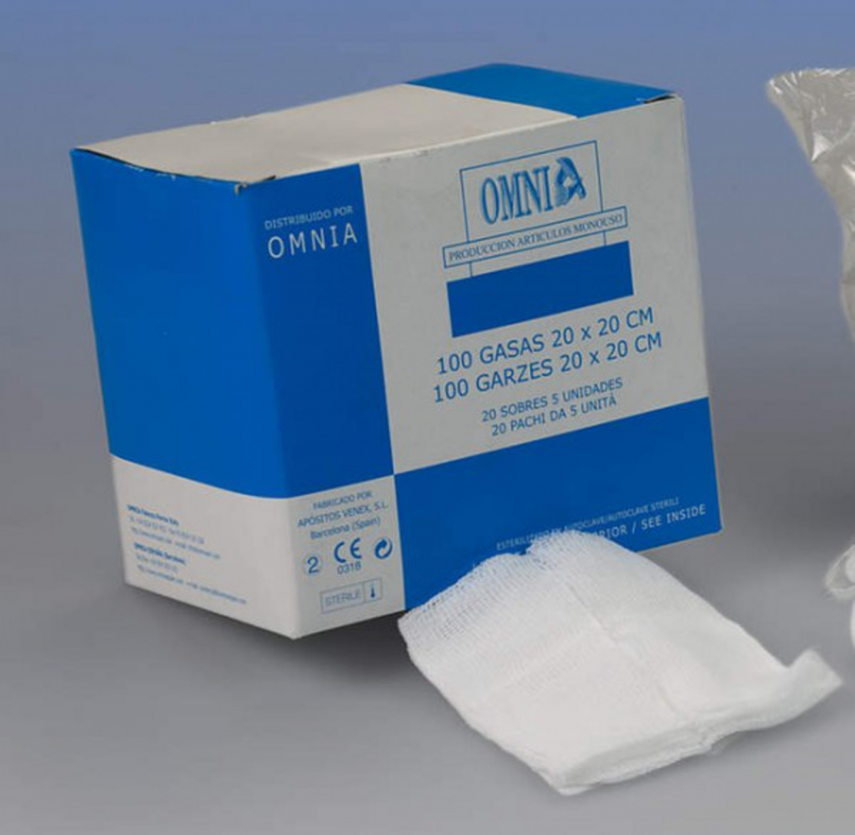 Compresse di garza piegata, a 4 strati, in Tnt, non sterili.