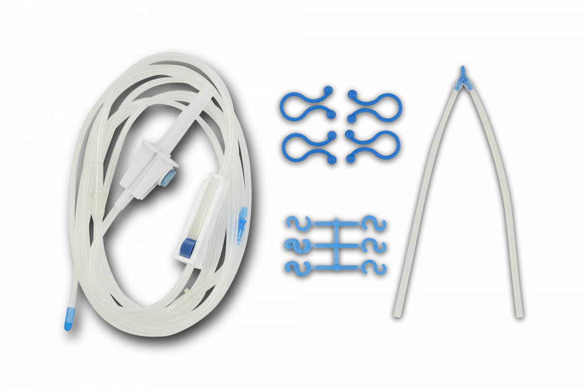 I sistemi di irrigazione si presentano completi di perforatore, roller o clamp per il controllo del flusso, raccorderia e sezione pompa peristaltica integrata.