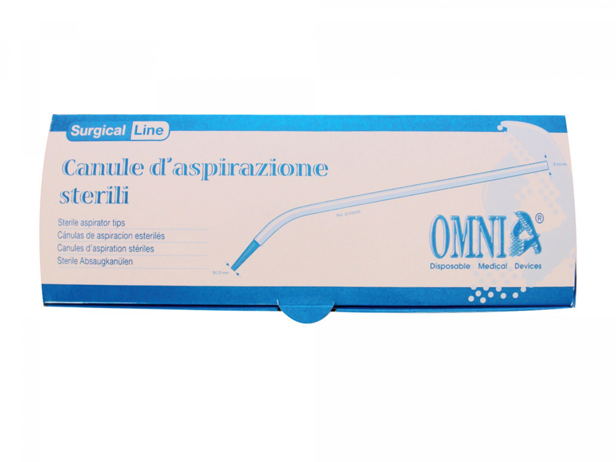Sterili, imbustate singolarmente. Confezione: 20 cannule + 1 adattatore/riduttore autoclavabile.