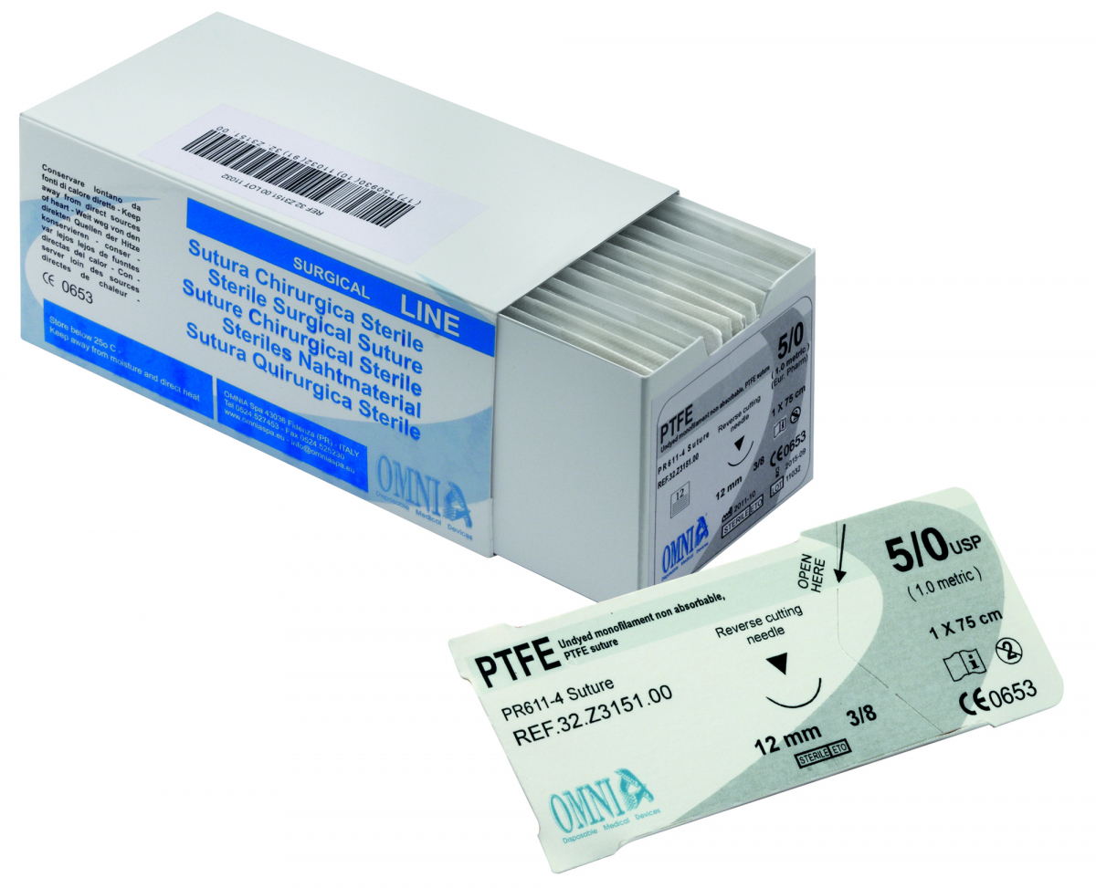 SUTURE PTFE Suture ideali per tutte le procedure implantari, parodontali e di innesto osseo dove l'impiego di una sutura monofilamento a bassa adesione batterica è auspicabile. Sono particolarmente morbide, biologicamente inerti e chimicamente non reattive. A differenza di altre suture monofilamento sintetico, il materiale è eccezionalmente tollerato nel cavo orale. Inoltre, le suture in PTFE sono ideali per limitare l'infiammazione, il sanguinamento e altri effetti collaterali che possono insorgere durante le operazioni di accostamento dei lembi. Resistenti, vantano un'ottima scorrevolezza tra i tessuti ed un eccellente biocompatibilità.
