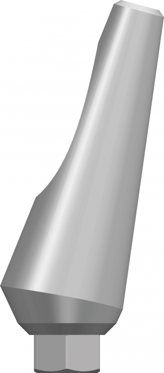 L’angolazione predefinita del moncone permette di correggere facilmente il disparallelismo dell’impianto.