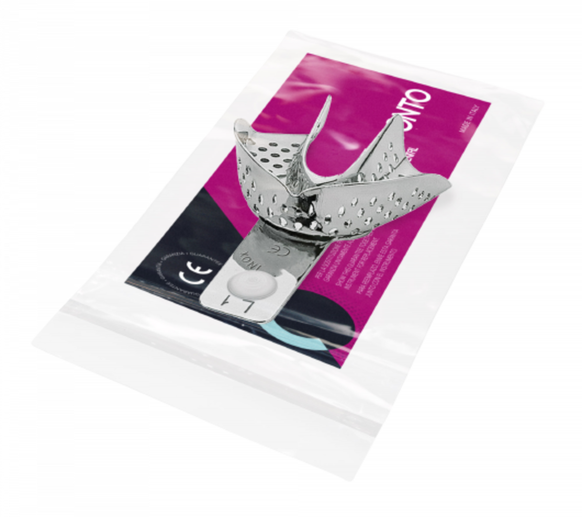 Portaimpronte forate, in acciaio inox, senza bordino ritentivo. Confezione: 1 pezzo