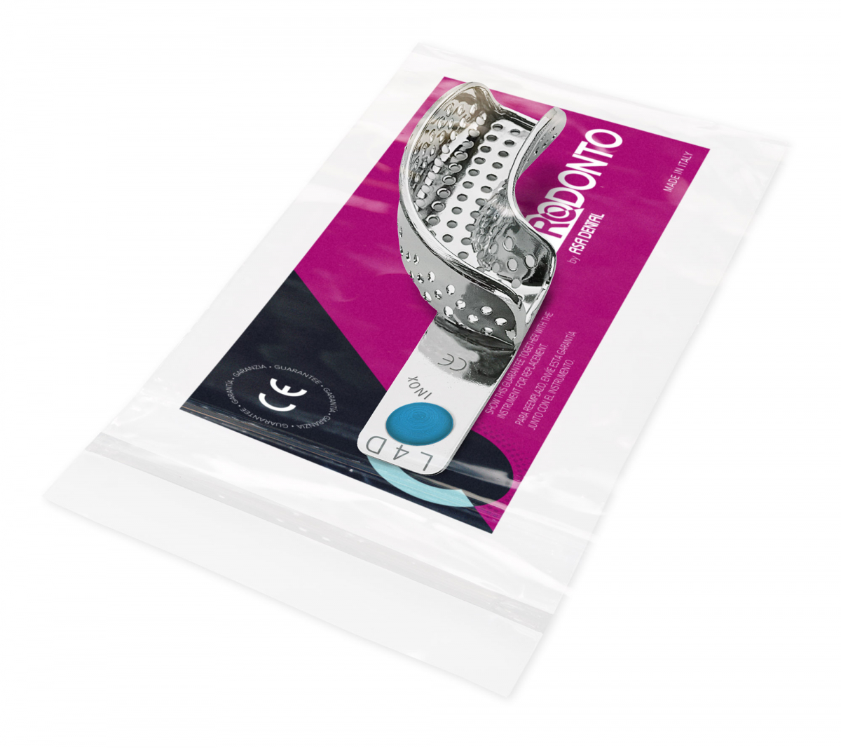 Portaimpronte in acciaio inox, forato, provviste di bordino ritentivo.