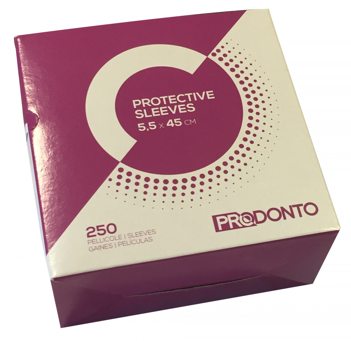 Pellicola protettiva per micromotori, siringhe aria/acqua e tubi di raccordo composta da un film di polietilene trasparente. Confezione: 250 guaine trasparenti. Misura 5,5x45 cm