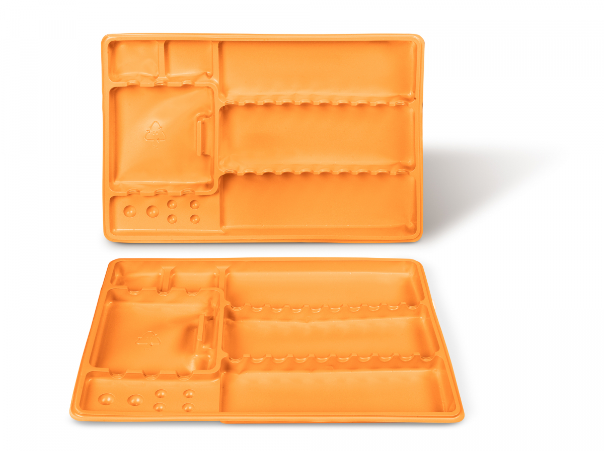 Vassoi monouso,in plastica atossica resistono agli acidi ed ai liquidi per cementi .Biodegradabili,sono disinfettabili a freddo,fondo liscio misura 28,6x1,7x18,8cm. Confezione: 400 pz. Disponibili in vari colori.