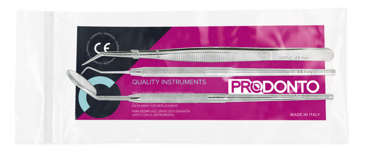 Contenuto del kit: Manico + specchietto n° 4, sonda n. 9, pinzetta london-college