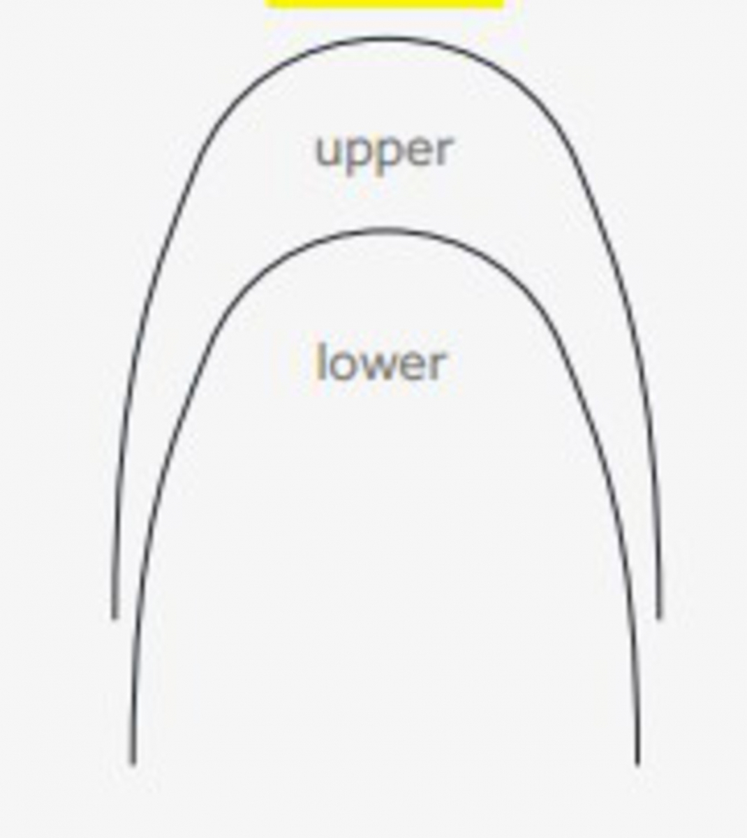 centro dell’arco con 3 linee per arcata superiore, ed 1 per