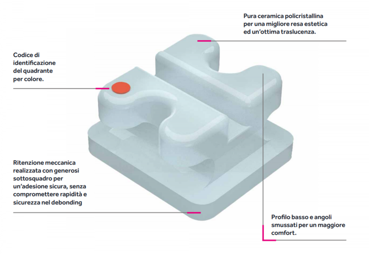 • Il bracket è realizzato in allumina policristallina, con un procedimento produttivo di sinterizzazione ad alta temperatura