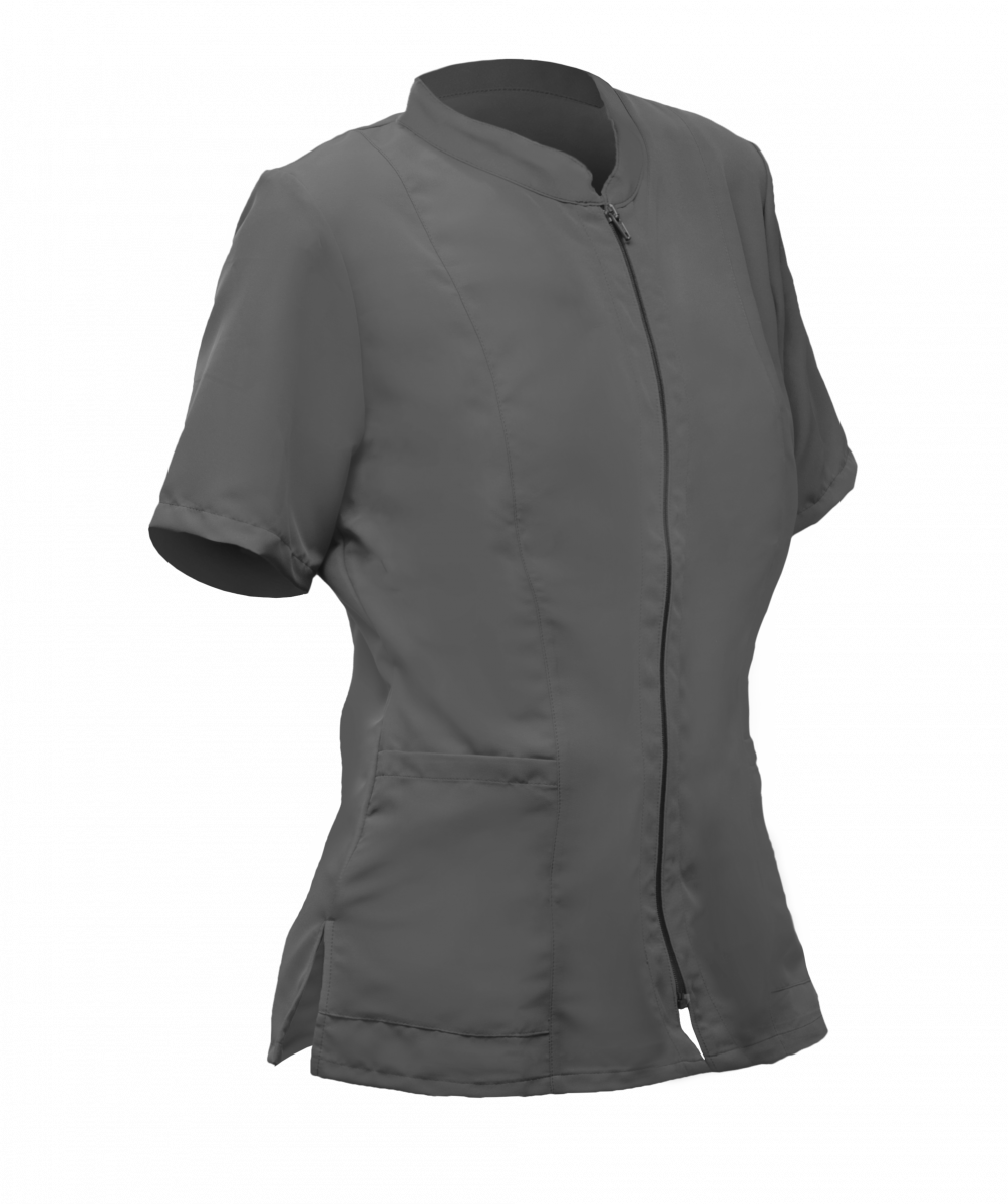 Casacca donna con zip , manica corta in tessuto tecnico in microfibra 100% poliestere (150 gr/m²) con micropori: traspirante, antimacchia, no stiro. Ritarda la proliferazione batterica, resistente fino a 1300 N, stabile e anti scolorimento. Vestibilità comoda grazie alle fibre elasticizzate.