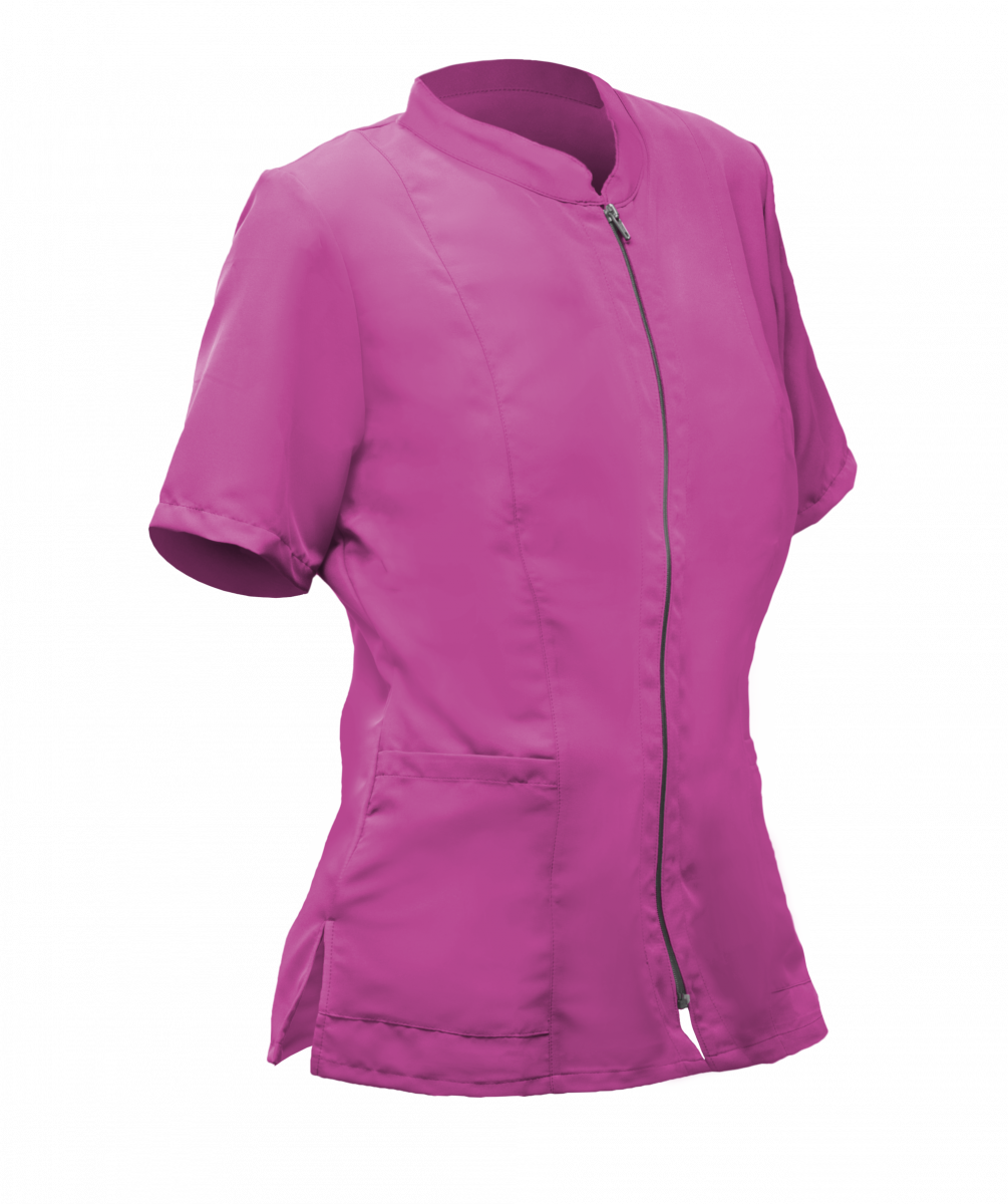 Casacca donna con zip , manica corta in tessuto tecnico in microfibra 100% poliestere (150 gr/m²) con micropori: traspirante, antimacchia, no stiro. Ritarda la proliferazione batterica, resistente fino a 1300 N, stabile e anti scolorimento. Vestibilità comoda grazie alle fibre elasticizzate.