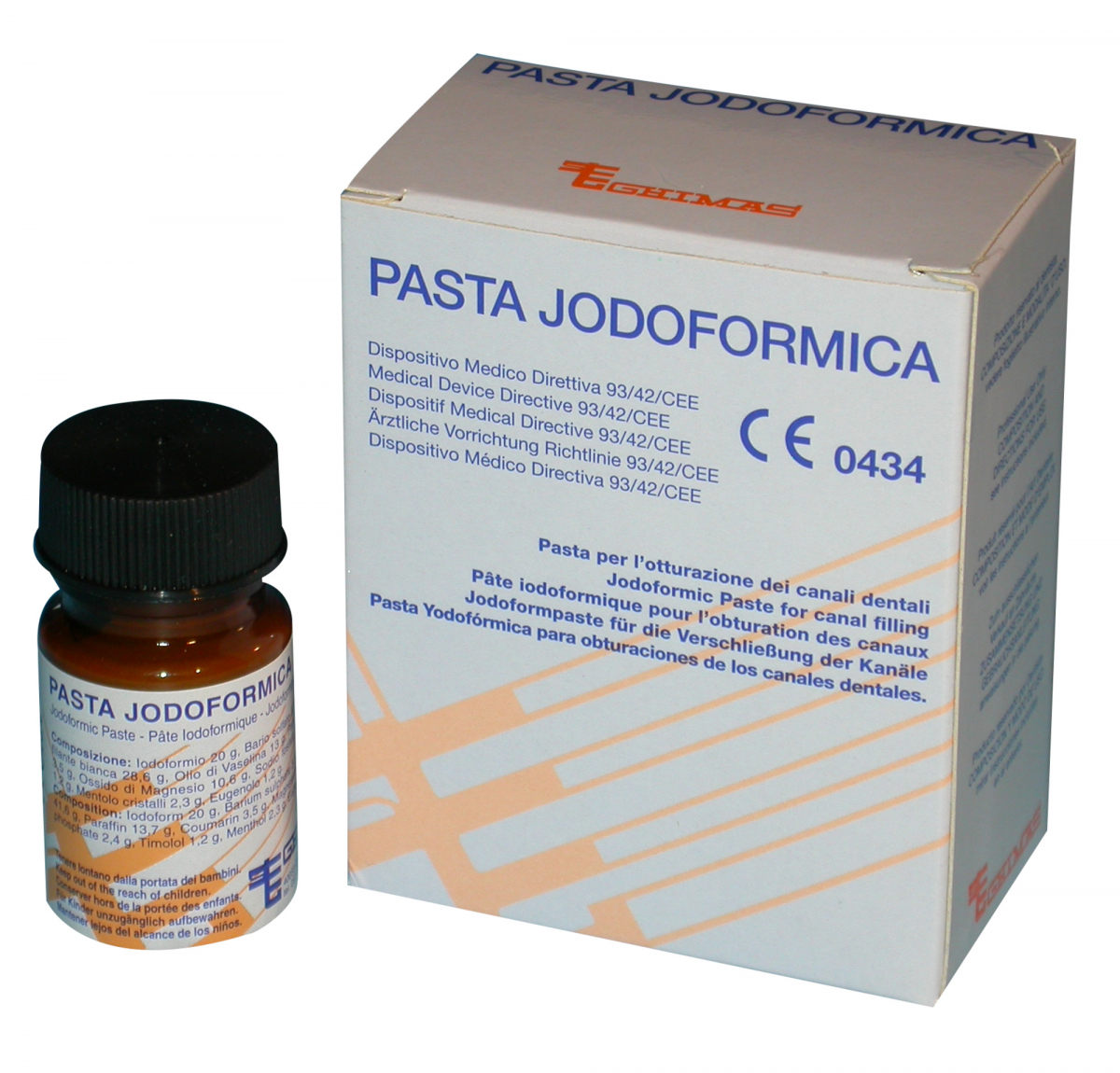 PASTA JODOFORMICA Pasta ad azione antisettica, semiradiopaca, per il trattamento di fistole e granulomi, e per l'otturazione dei canali. Flacone da 20 gr + spatole applicatrici