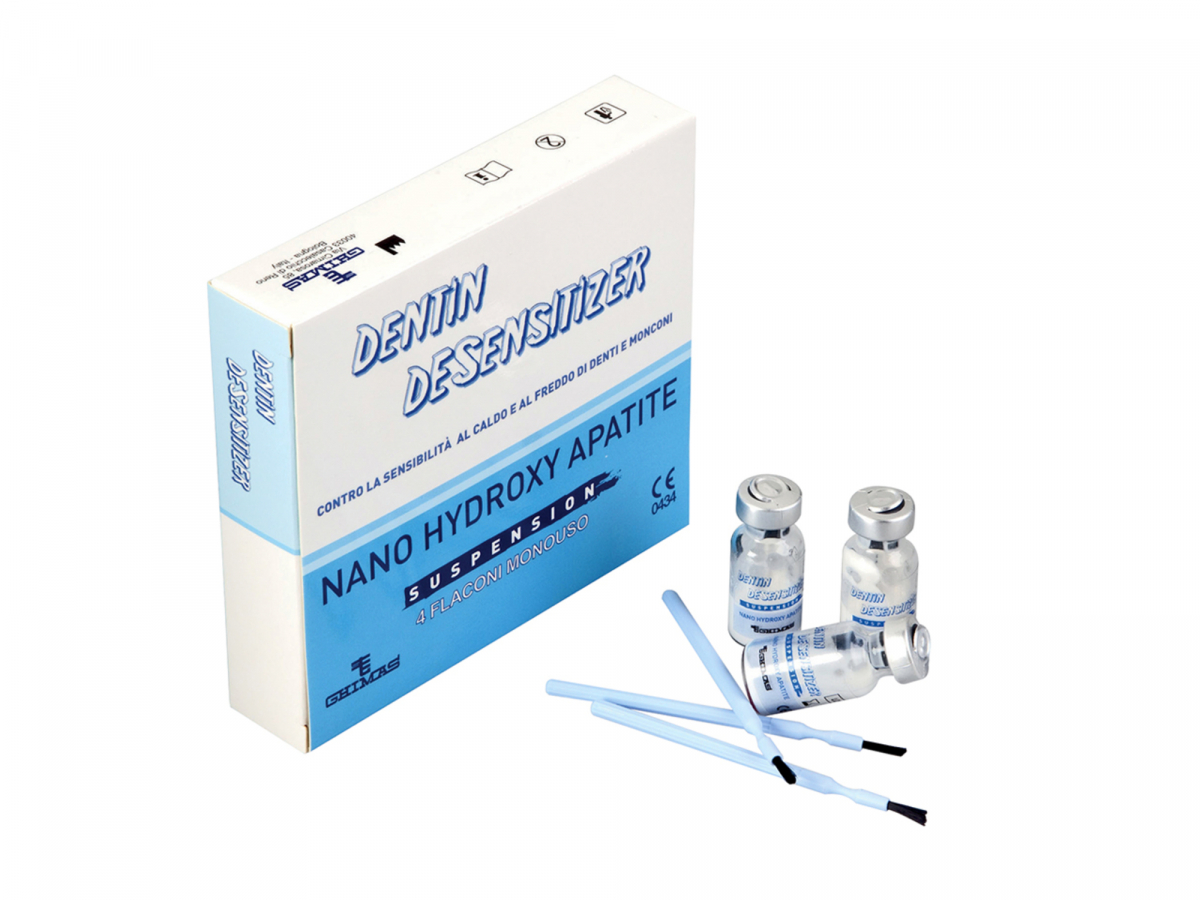Prodotto per il trattamento dell'ipersensibilità dentinale, è indicato nel trattamento desensibilizzante e protettivo dei monconi di denti parodontalmente sani e vitali. La nanoidroissiapatite non riassorbibile, si lega all'apatite dentinale e alle fibrille di collagene dei canalicoli dentinali, occludendoli. Confezione: 4 flaconi da 1,2 ml + 4 pennellini applicatori.