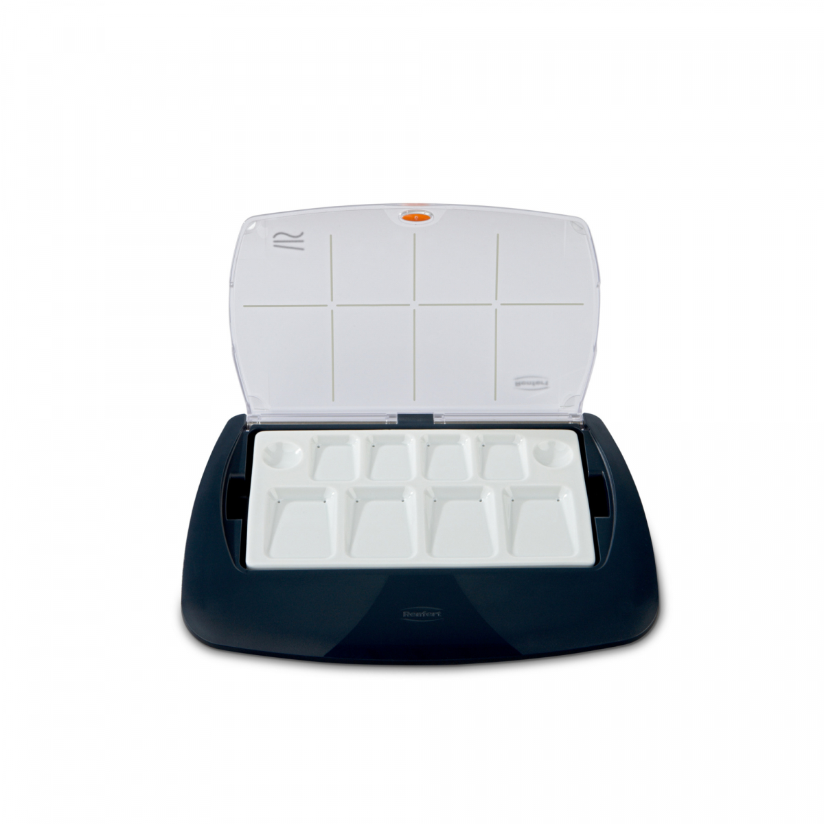 Piastra per ceramica high-tech con superficie vetrificata e cavità perforate. Umidificazione capillare automatica per la lavorazione e lo stoccaggio delle masse ceramiche dentali.