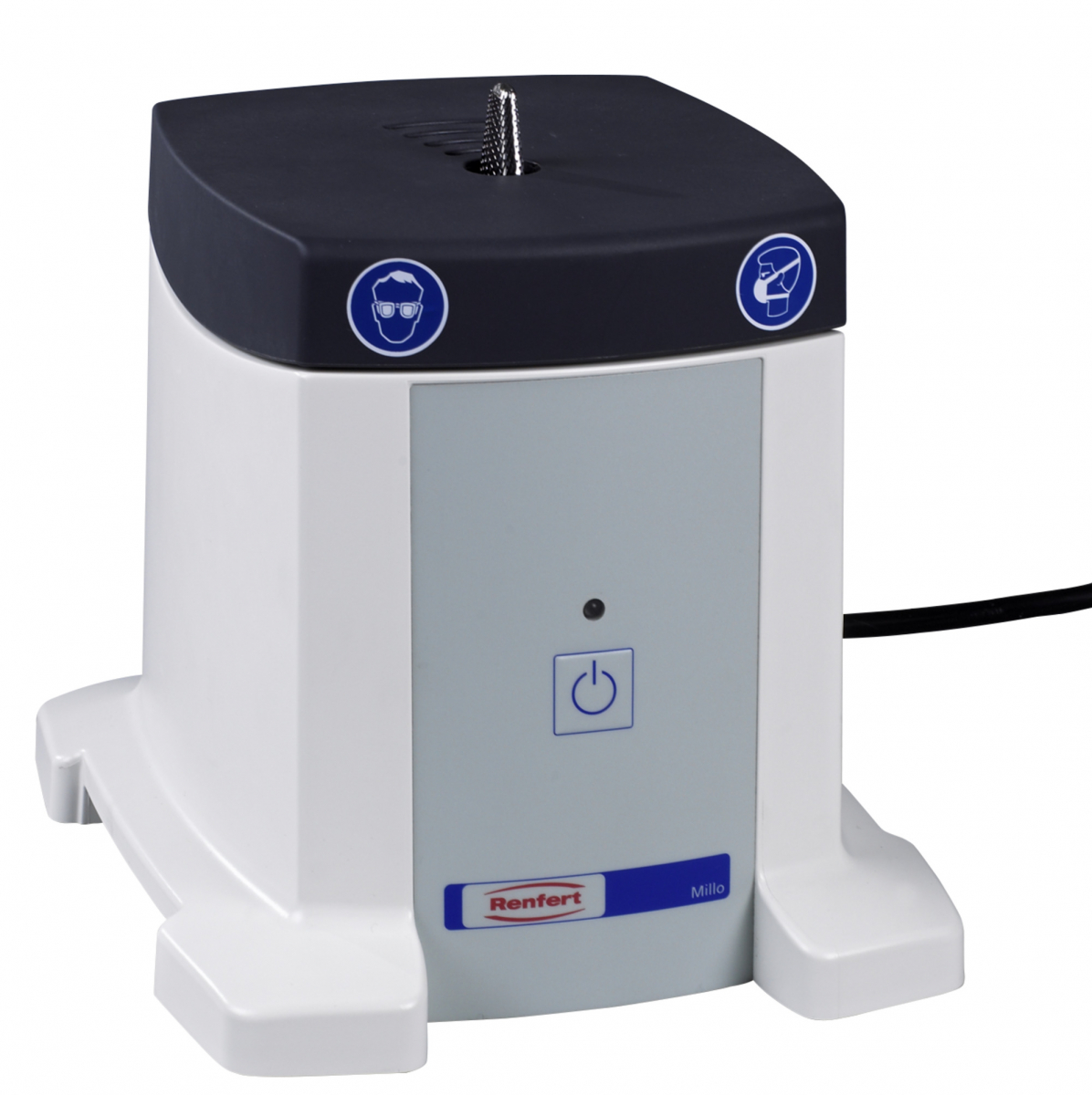 MILLO Rifinitore per modelli ideale per aumentare la qualità e la sicurezza nella produzione dei modelli con monconi sfilabili. Grazie al suo utilizzo è possibile sfilare i monconi senza alcun impedimento ed il rischio di rottura è quasi completamente escluso. Possibilità di collegare l'apparecchio ad un'aspirazione esterna. Possibilità di scelta tra fresa fina ed una fresa a dentatura grossa a seconda della quantità di materiale da asportare. Dimensioni esterne: 252x214x207 mm (LxHxP). Peso: 5,7 Kg. Numero di giri: 2770-3350 rpm. Dotazione: fresa a dentatura incrociata