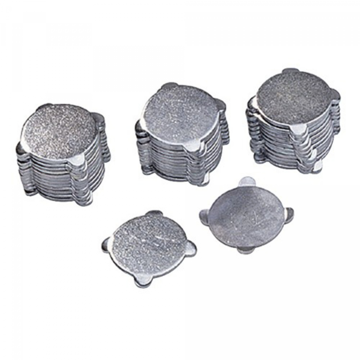 PIN CAST - Renfert Stampi per basi di modelli con monconi s filabili e tecnica split-cast calamitato . Composti da due parti: 1 base rigida c on tacche in negativo (incavi) e 1 guain a di gomma facilmente adattabile all'alt ezza dei Pin del modello. Confezione: 120 dischi ritentivi