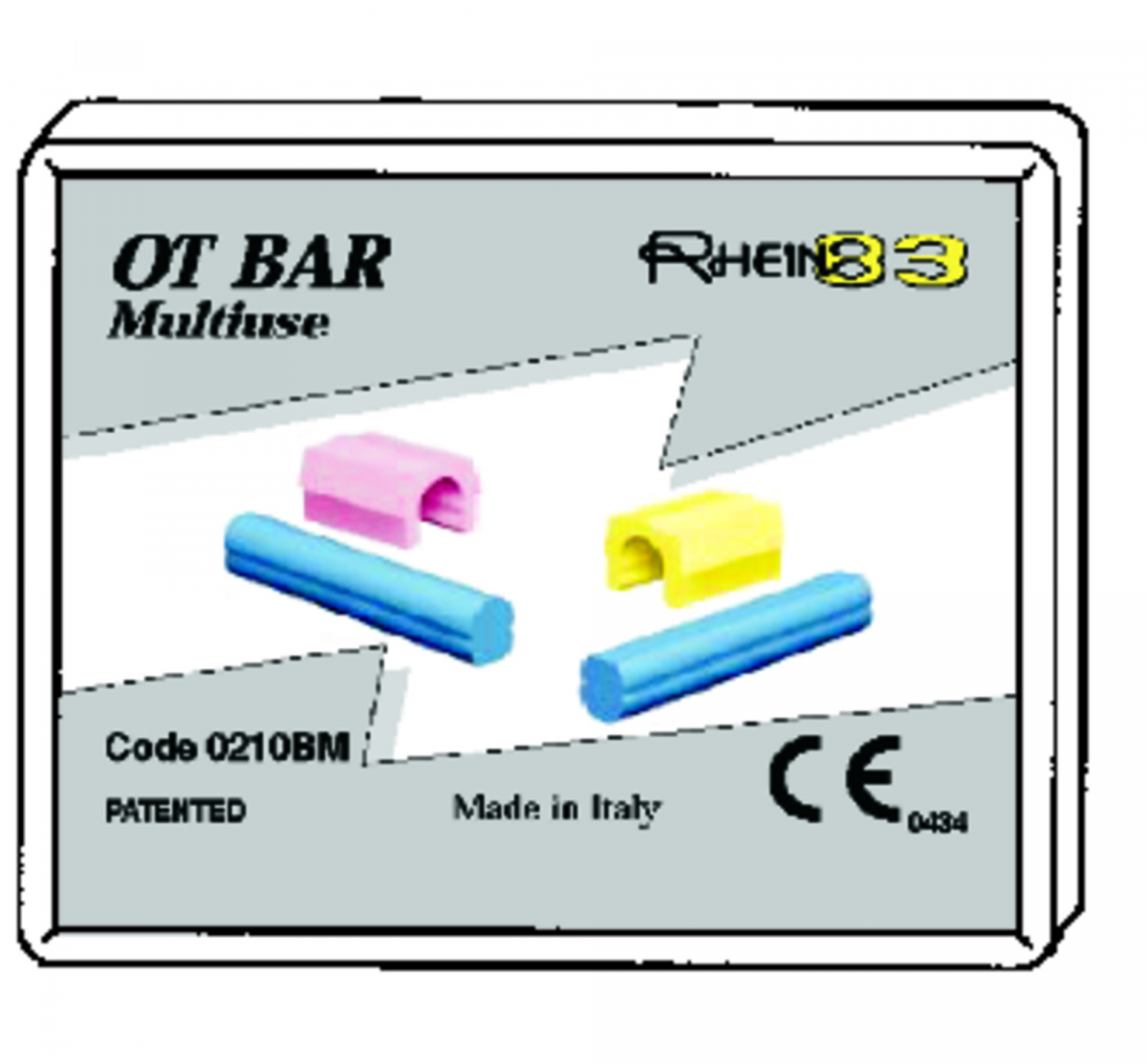 ATTACCHI OT BAR MULTIUSE OT BAR MULTIUSE + CONNETTORI CONFEZIONE CONTENENTE: 2 barre calcinabili; 4 clip di posizione A; 4 clip di posizione B; 4 box calcinabili; 4 clip ritentive rosa; 4 clip ritentive giallo; 2 connettori; 1 raccordo gengivale.
