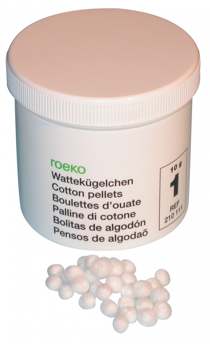 PALLINE DI COTONE - Roeko Palline di cotone ad alto potere assorbente ideali per asciugare le cavità e applicare medicazioni. Misura 1 (media) Ø 6,3 MM. Barattolo da 10 gr.