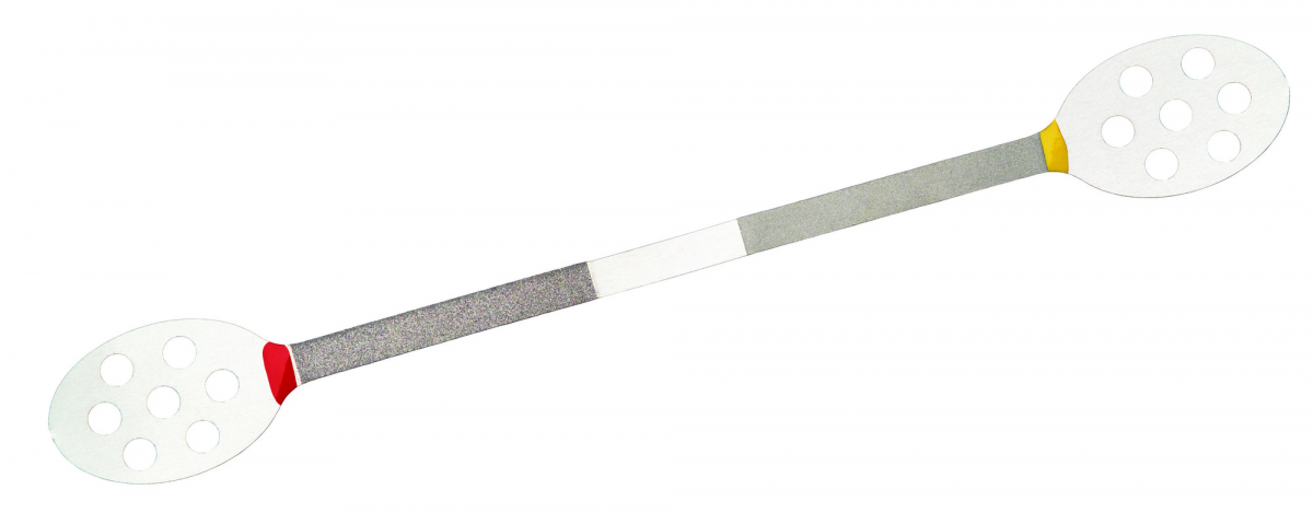 PROXOSTRIP Strisce abrasive metalliche con due lati diamantati in differenti granulometrie (40 µm/rosso, 15 µm/giallo), estremità ampie e forate per una presa sicura ed ergonomica. L'altezza di 2,5 mm e la parte centrale non diamantata garantiscono il rispetto assoluto del punto di contatto. Indicate per la rifinitura e la lucidatura dei restauri nelle zone interprossimali. Confezione: 12 strisce