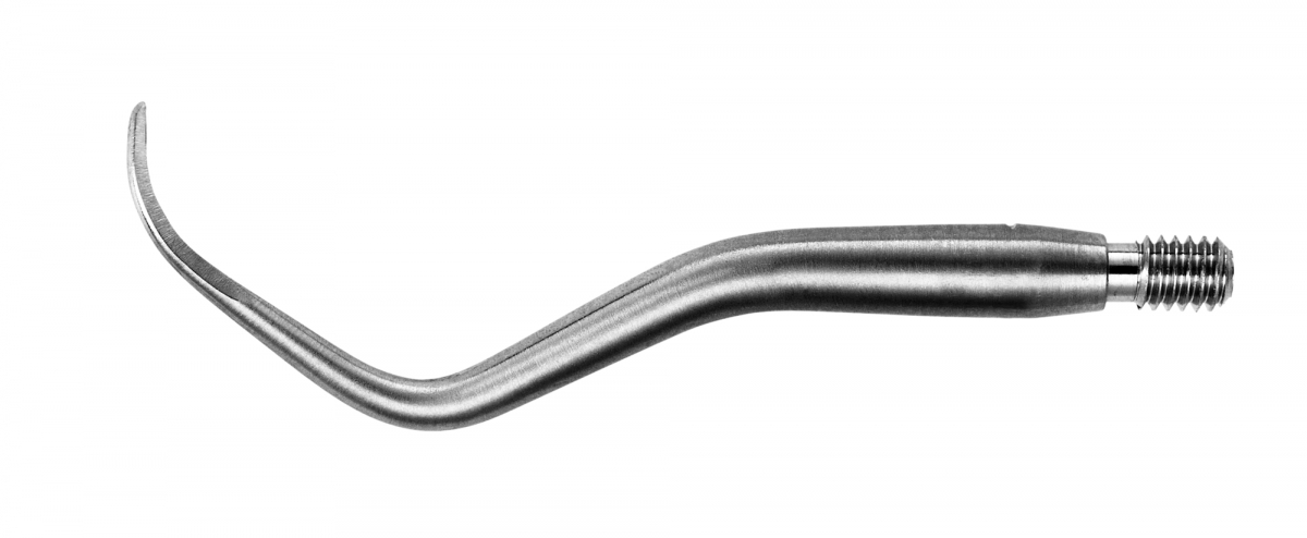 Punta di ricambio per curette in titanio per impianti. Da montare su manico a vite DMS-V o DMS-N. Curvatura a destra.