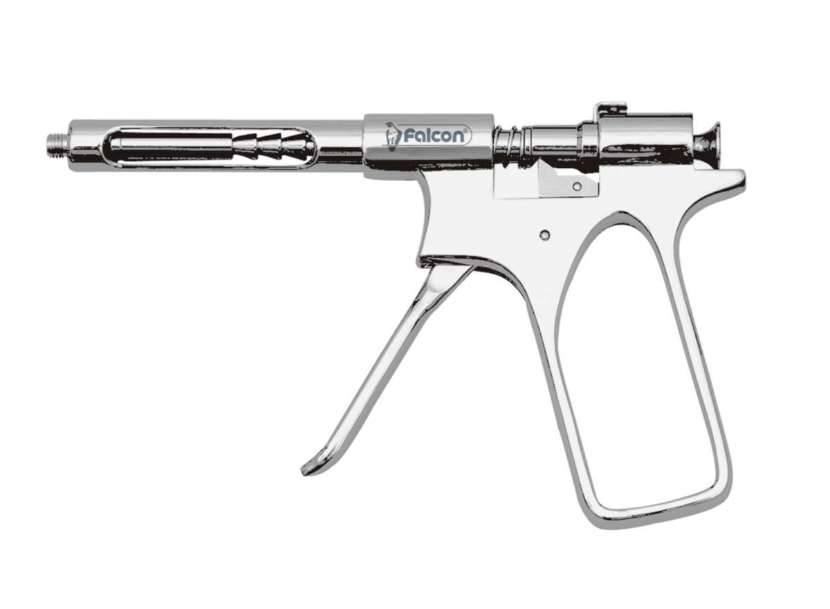 Siringa "a pistola" per anestesia intraligamentare. Elevata pressione di iniezione grazie all'azione della leva: dosaggio esatto ogni volta. Confezione: 1 pezzo