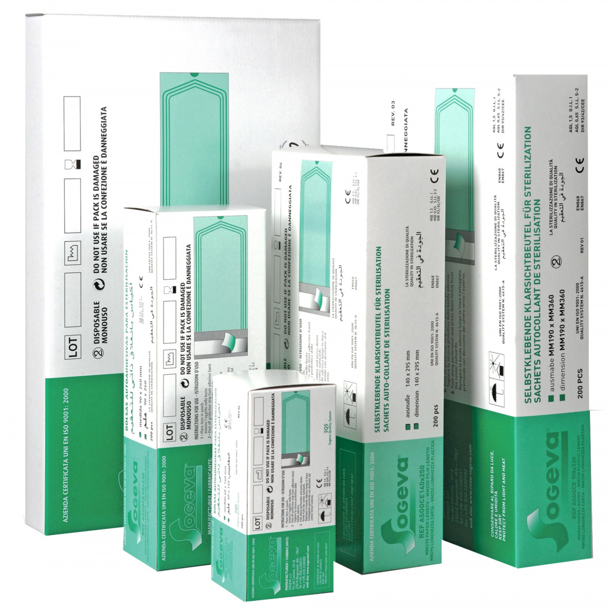 Buste a sigillatura automatica che non richiedono l'utilizzo di termosigillatrice. Realizzate in carta e plastica trasparente. Confezione da 200 buste. Misura 330x400 mm