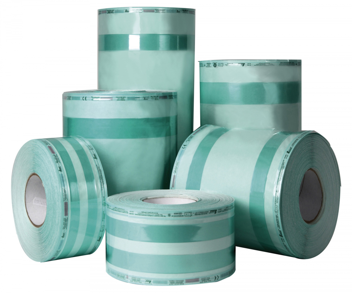 Rotolo per sterilizzazione a vapore con soffietto. Misura 10x5 cm (H) x 100 m