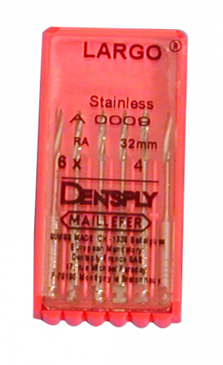 LARGO Frese allargacanali per contrangolo. In acciaio inox, sterilizzabili in autoclave. Placchetta da 6 strumenti