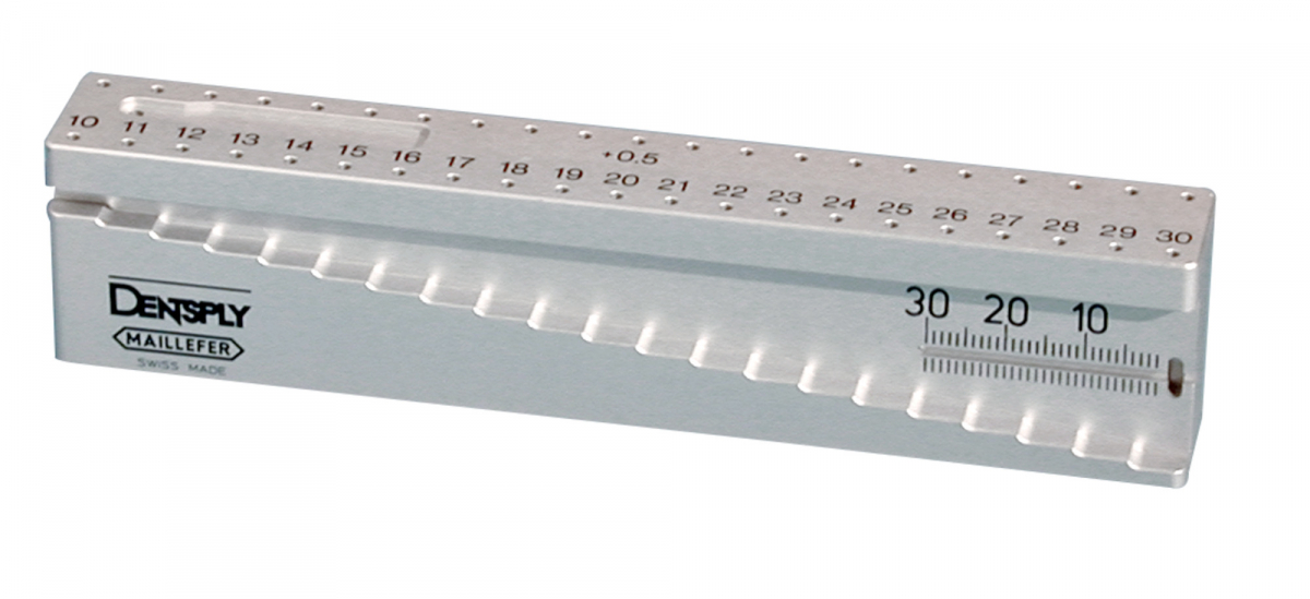 ENDO-M-BLOC Misuratore canalare in alluminio anodizzato, ideale per strumenti con numerazione tradizionale. Dimensioni esterne: 14,7x3,3x2 cm (LxHxP). Confezione: 1 pezzo