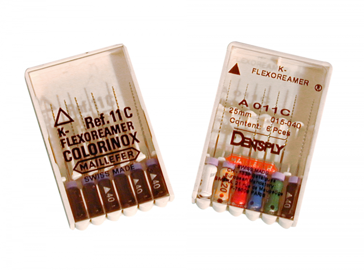K-FLEXOREAMERS COLORINOX Strumentario canalare super-flessibile, in acciaio inox. Indicato per la preparazione dei canali irregolari. Provvisto di manico in plastica. Sterilizzabile in autoclave. Placchetta da 6 strumenti sterili
