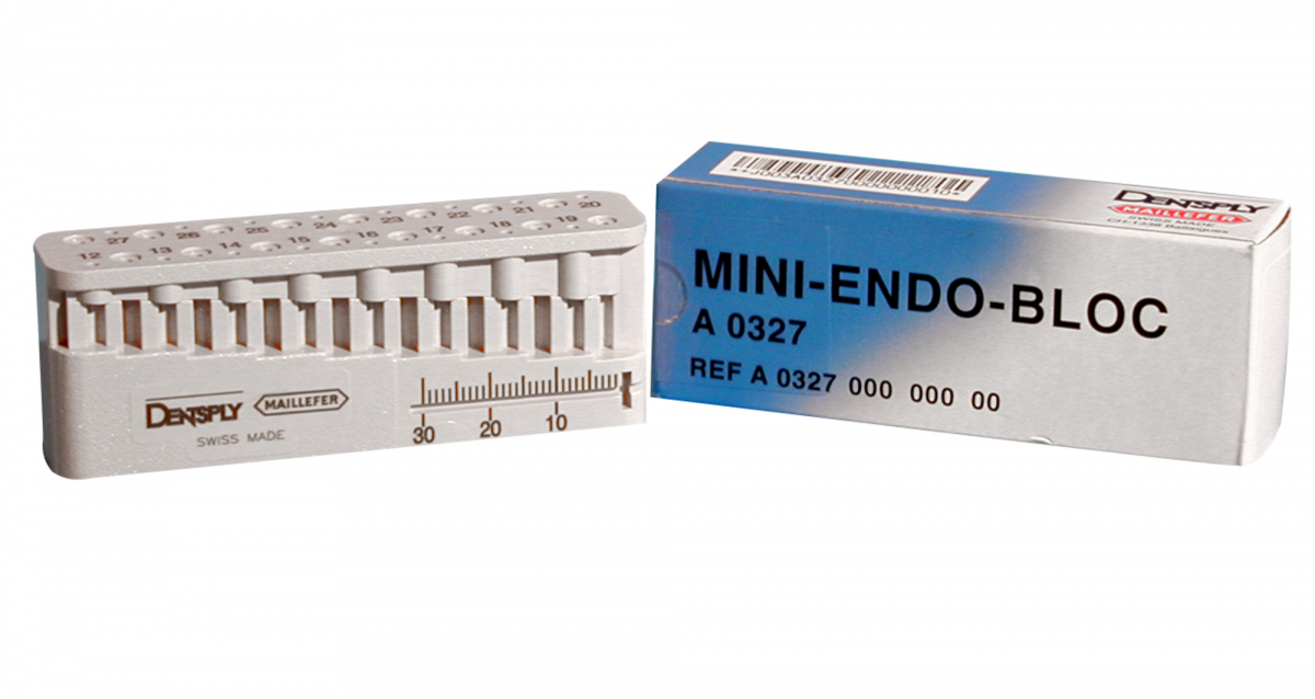 MINI ENDO BLOC Misuratore canalare in plastica, ideale per strumenti con numerazione intermedia o tradizionale. Autoclavabile. Dimensioni esterne: 8,7x2x3,1 cm (LxHxP). Confezione: 1 pezzo.