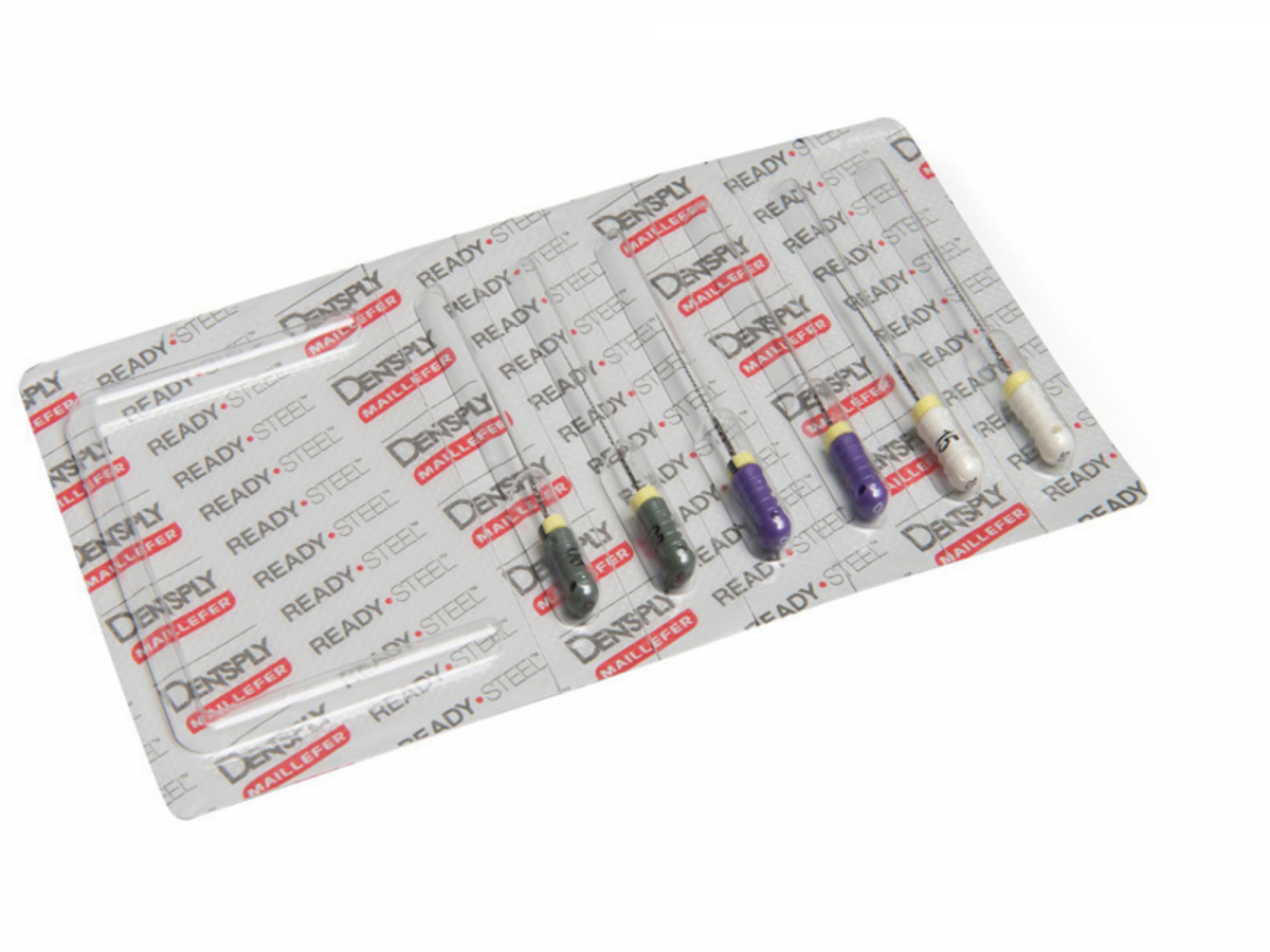 C+FILES Strumentario canalare, in acciaio inox, da utilizzare prima della preparazione del canale con strumentario manuale e meccanico: in particolare, facilitano l'individuazione degli imbocchi canalari, l'accesso al 3° apicale ed il superamento delle calcificazioni. Placchetta da 6 strumenti sterili