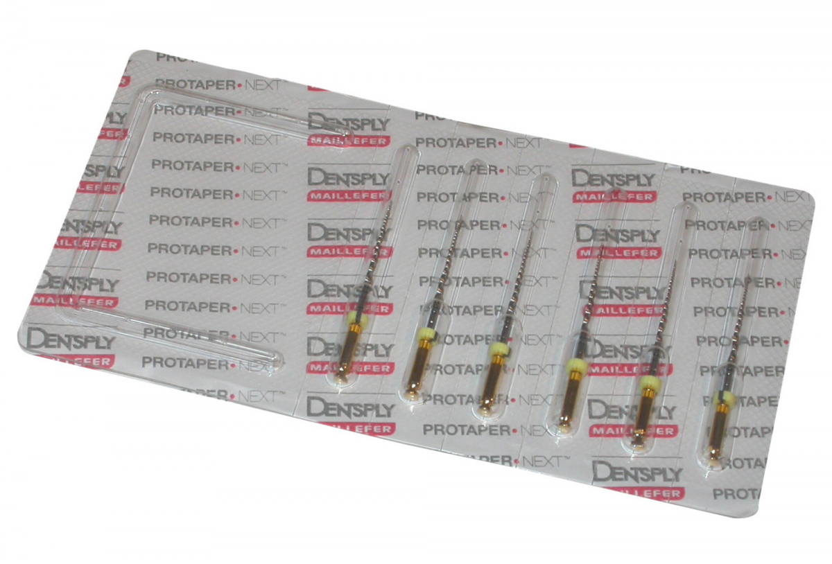 PROTAPER NEXT Strumentario canalare, successore del sistema Protaper Universal, Protaper Next è prodotto in lega NiTi M-Wire ed è dotato di una nuova sezione rettangolare eccentrica per una migliore raccolta dei detriti ed un'ottimale tracciatura del canale. Questo innovativo sistema è in grado di trattare, rapidamente ed in tutta sicurezza, la maggior parte dei canali radicolari, anche quelli molto stretti e curvi: una sola sequenza di file per tutti i casi clinici, solo 2 strumenti (X1 e X2) nella maggior parte dei casi. Caratteristiche principali: conicità variabili per una tecnica crown-down ottimizzata, diametri di finitura apicale comunemente approvati, rischio di rottura dello strumento significativamente ridotto, maggior rispetto dell'anatomia canalare. Gli strumenti sono disponibili in blister presterilizzati. Placchetta da 6 strumenti sterili - Lunghezza 25 mm