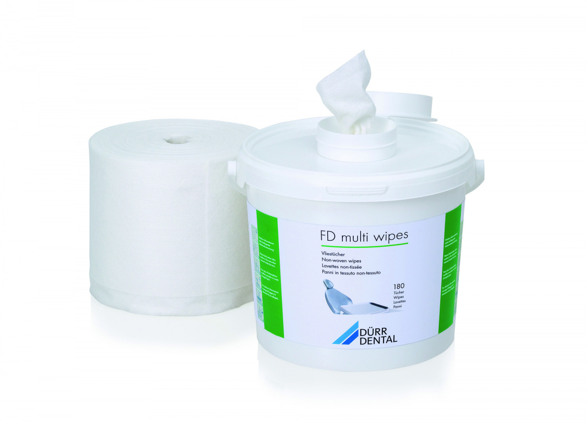 Panni asciutti per la disinfezione delle superfici. Da utilizzare con qualsiasi disinfettante per superfici Durr Dental (FD 322, FD 333, ecc.). Ogni panno misura 20x30 cm. Confezione: 1 contenitore da 180 panni