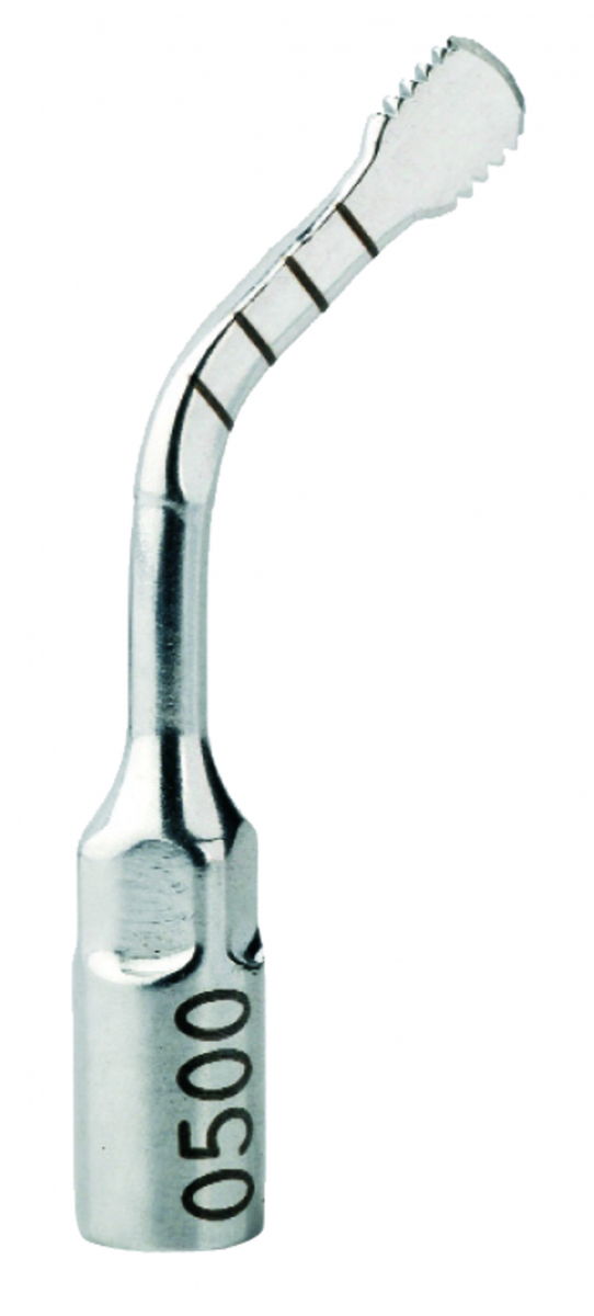 INSERTO SURGYBONE MOD.500 Scalpello a lama in testa con seghettatura laterale, dal taglio preciso e aggressivo. Ideale per prelievi mandibolari.